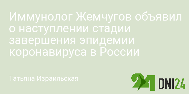 Иммунолог Жемчугов объявил о наступлении стадии завершения эпидемии коронавируса в России