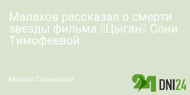 Малахов рассказал о смерти звезды фильма «Цыган» Сони Тимофеевой