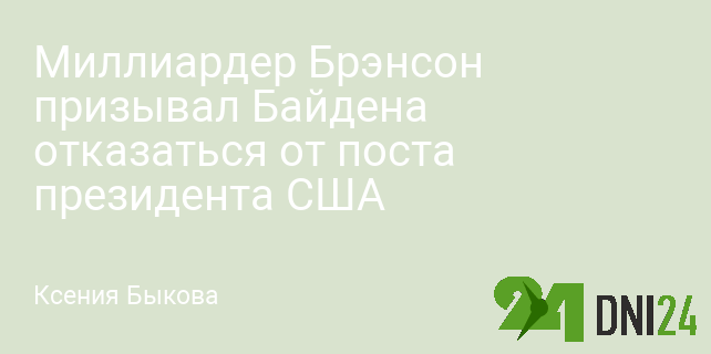 Британский предприниматель и миллиардер Ричард Брэнсон призвал президента США Джо Байдена отказаться от участия в президентских выборах. Он опубликовал заявление на сайте своей компании Virgin Group.