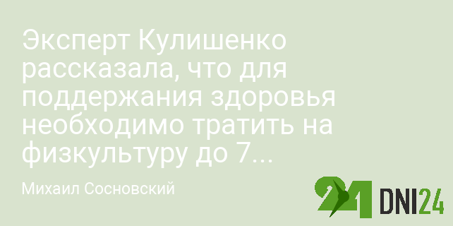 Эксперт Кулишенко рассказала, что для поддержания здоровья необходимо тратить на физкультуру до 7 часов в неделю