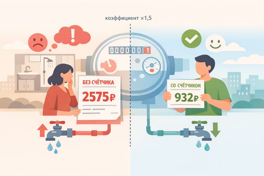 Коэффициент 1,5 — это не произвольная надбавка управляющих компаний, а законодательно установленный механизм стимулирования граждан к установке приборов учета. Экономическая логика проста: государство через финансовое давление побуждает собственников переходить на точный учет потребления ресурсов.